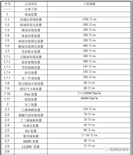 項目按照煉油、芳烴、乙烯一體化的加工方式進行設計,原油綜合加工能力按1500萬噸/年考慮,并配套建設200 萬噸/年對二甲苯裝置、120 萬噸/年乙烯裂解裝置及下游化工裝置。項目主要工程內容包括主體工程、環保工程、儲運工程、公用工程、相應配套設施及依托工程。 項目設計加工原油為混合比例1:1 的科威特原油和阿拉伯輕油的混合油, API 為35.44,屬于輕質混合原油,減壓渣油的產量為296.25 萬噸/年。 項目總加氫能力本項目總加氫能力達到了 1420 萬t/a,汽柴油全部滿足國Ⅵ質量標準要求。項目產品主要包括汽油、柴油、航煤、苯、PX、硫磺、硫酸、瀝青、石油焦、燃料油、丁二烯、乙烯C5餾分、乙烯C9、聚丙烯、HDPE、LLPE、MEG、DEG、TEG、液化氣、異丁烷、戊烷發泡劑等。