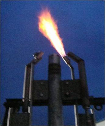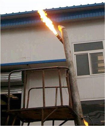 公司開發出的第五代新型長明燈。火焰剛勁,不受惡劣氣候的影響,并且高效節能,單支長明燈天然氣耗氣量約3Nm3/h。